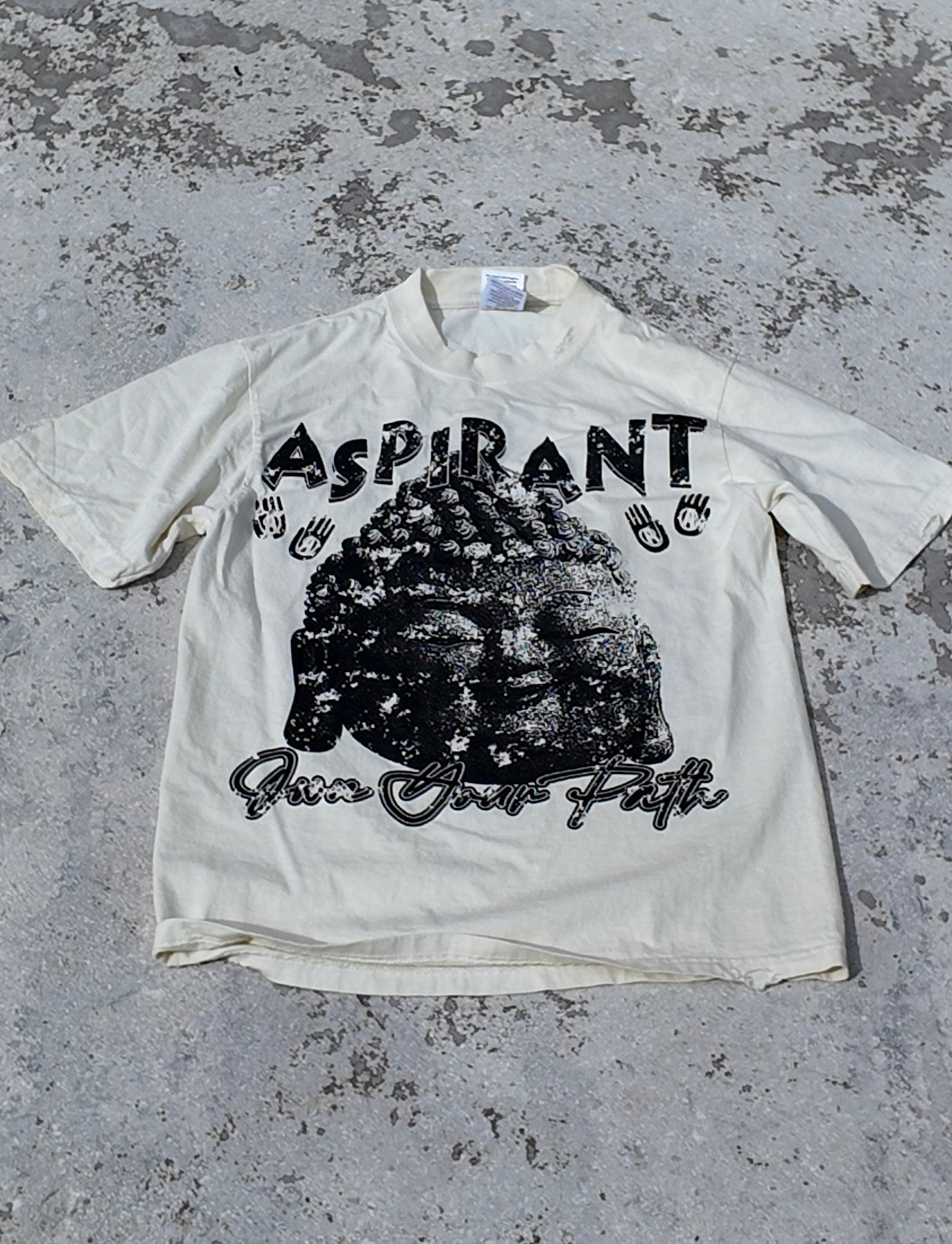 Built from premium 320 GSM heavyweight cotton, this cream Aspirant tee delivers a structured, luxury feel with long-lasting durability. The front artwork is high-detail screen printed, giving the graphic a bold, textured look that stands out on the soft cream base.